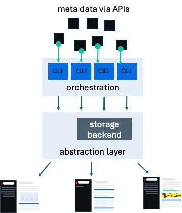 Metadata is being collected from multiple sources. We produce a command line tool for each source that can be run by every type of orchestration framework. The scope of the tool is to connect, collect the metadata, and replace/append to the data store. Current metadata sources are
